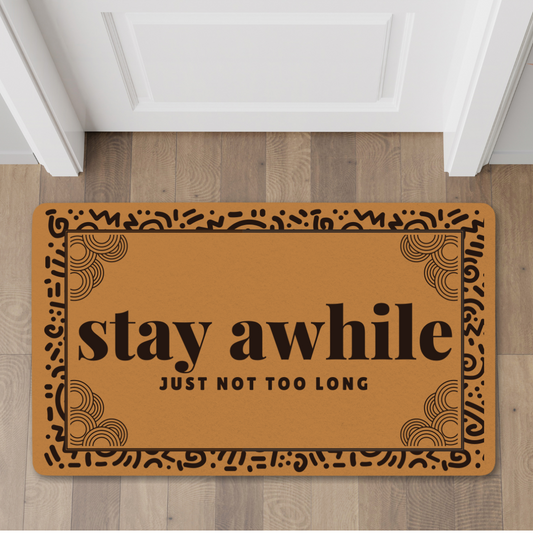 Stay Awhile Polyester Doormat | Funny Welcome Mat