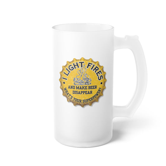 Frosted Glass Beer Mug - I Light Fires and Make Beer Disappear