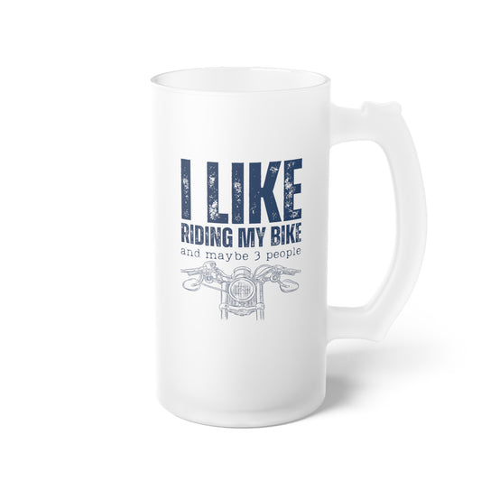 Frosted Glass Beer Mug - I Like Riding My Bike
