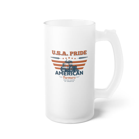 Frosted Glass Beer Mug - USA Pride American Farmers