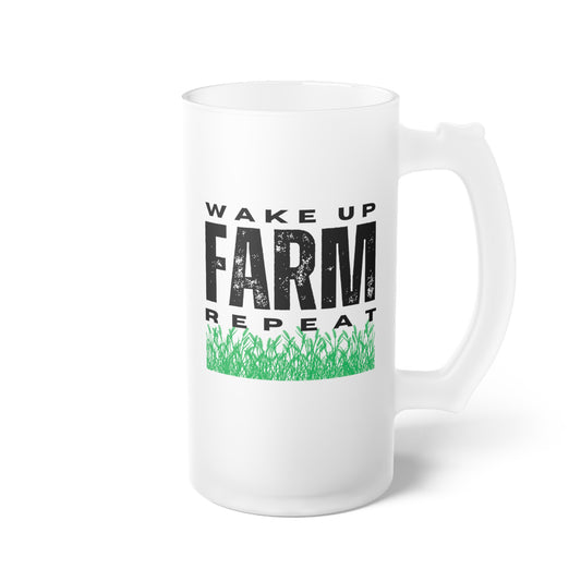 Frosted Glass Beer Mug - Wake Up Farm Repeat