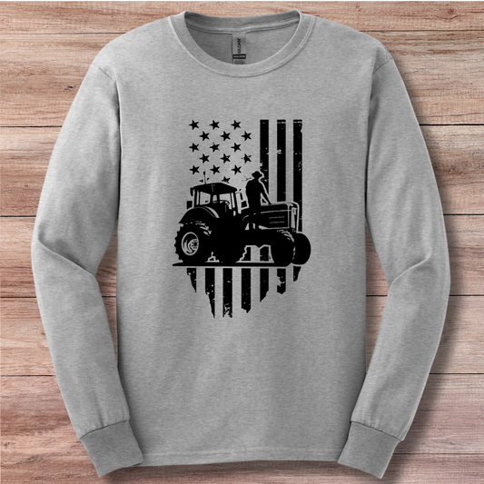 USA Tractor, Distressed Flag Long Sleeve Tee | Farmer Gift