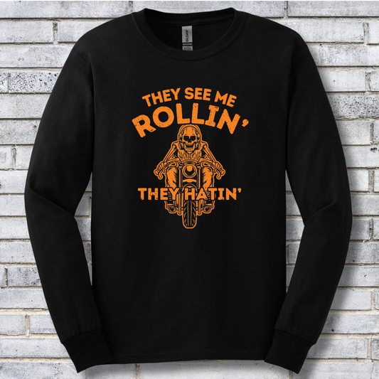 They See Me Rollin They Hatin Motorcycle Long Sleeve Tee | Biker Gift