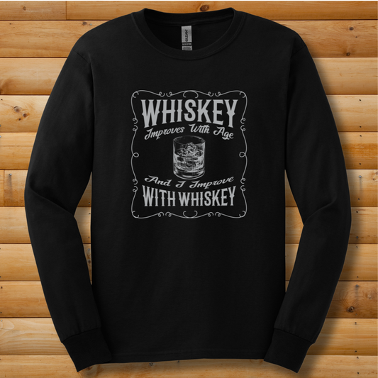 Whiskey Improves With Age Long Sleeve Tee | Whiskey Drinker Shirt