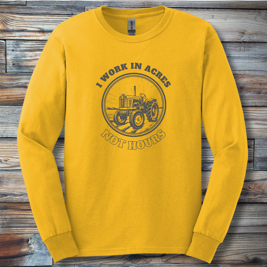 I Work In Acres Long Sleeve Tee | Farmer Gift
