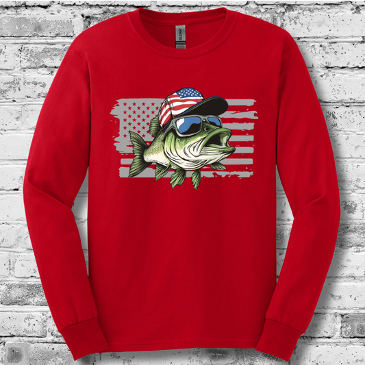 Patriotic Bass Long Sleeve Tee | Funny Fishing Shirts