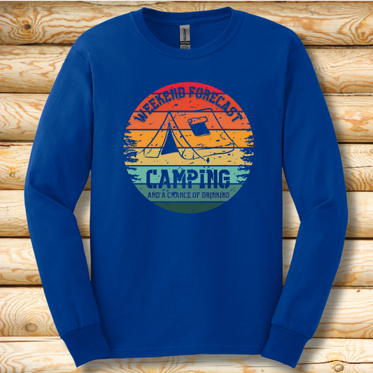 Weekend Forecast Camping and Drinking Long Sleeve Tee | Camper Gift