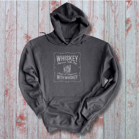 Whiskey Improves with Age Long-Sleeve Hoodie | Whiskey Shirt