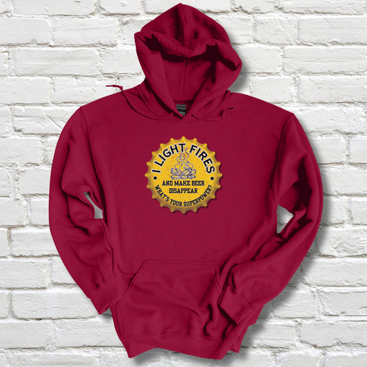 I Light Fires and Make Beer Disappear Long-Sleeve Hoodie | Campfire Beers