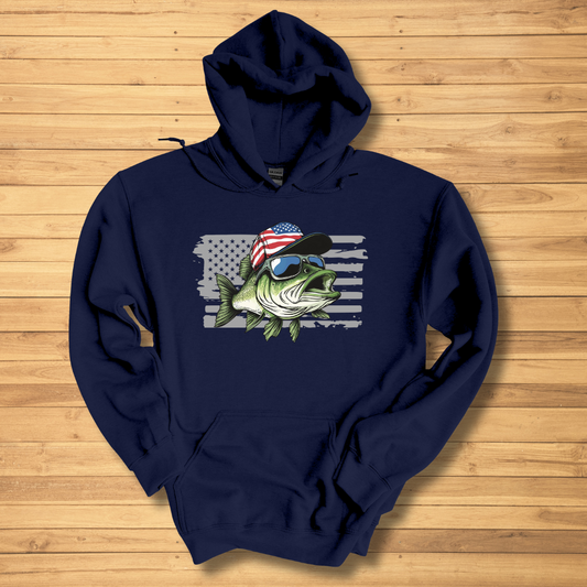 Patriotic Bass Long-Sleeve Hoodie | Funny Fishing Shirts