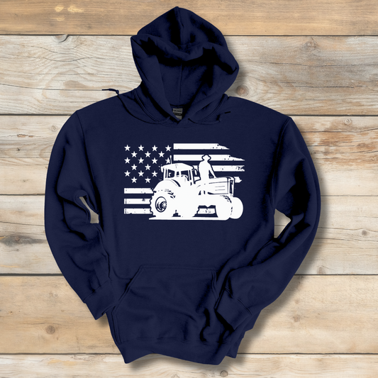 USA Tractor, Distressed Flag Long-Sleeve Hoodie | Farmer Gift