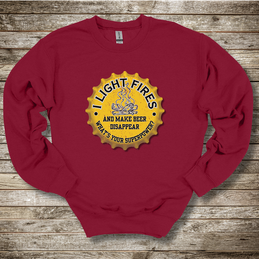 I Light Fires and Make Beer Disappear Sweatshirt | Campfire Beers