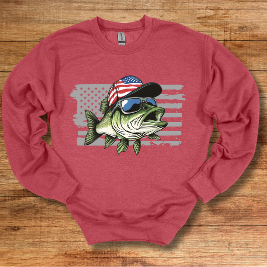 Patriotic Bass Sweatshirt | Funny Fishing Shirts