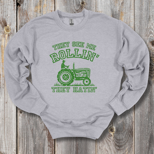 They See Me Rollin They Hatin Tractor Sweatshirt | Farmer Gift