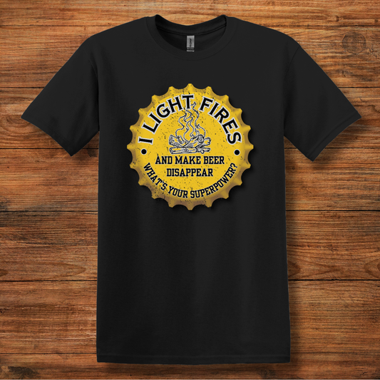 I Light Fires and Make Beer Disappear T-Shirt | Campfire Beers