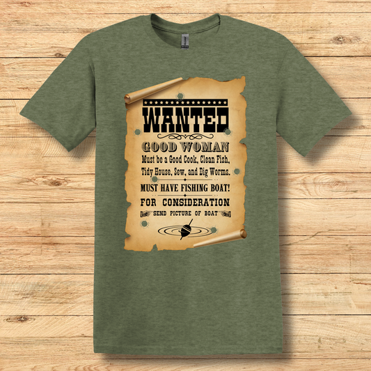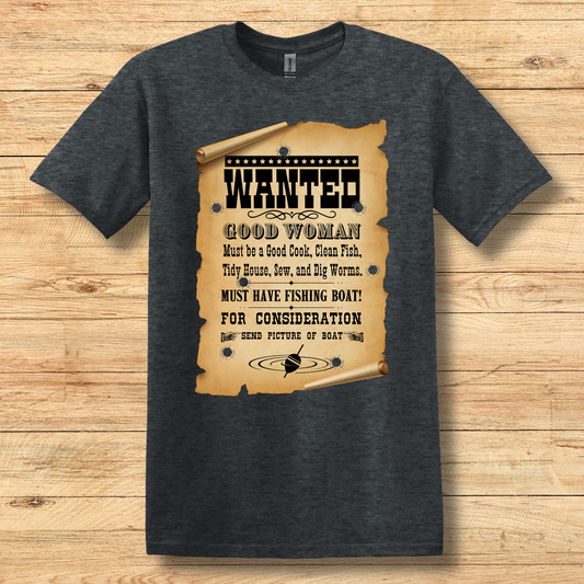 Wanted Good Woman T-Shirt | Funny Fishing Shirt
