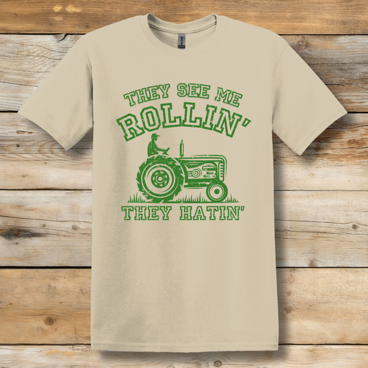 They See Me Rollin They Hatin Tractor T-Shirt | Farmer T-Shirts Funny