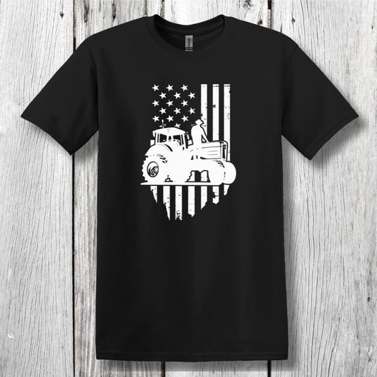 USA Tractor, Distressed Flag T-Shirt | Farmer Gift