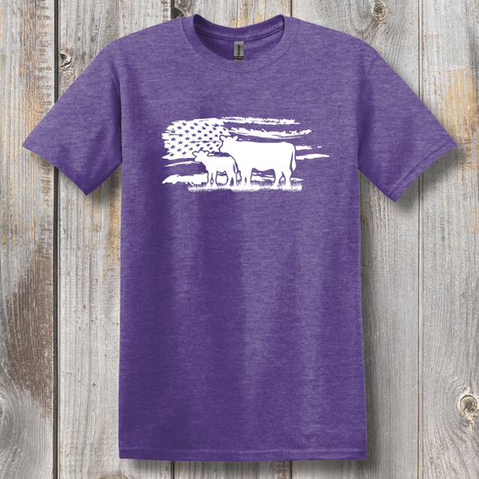 USA Cow Distressed Flag T-Shirt | Farmer Gift