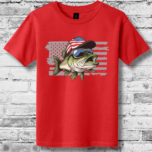 Patriotic Bass Youth T-Shirt | Funny Fishing Shirts