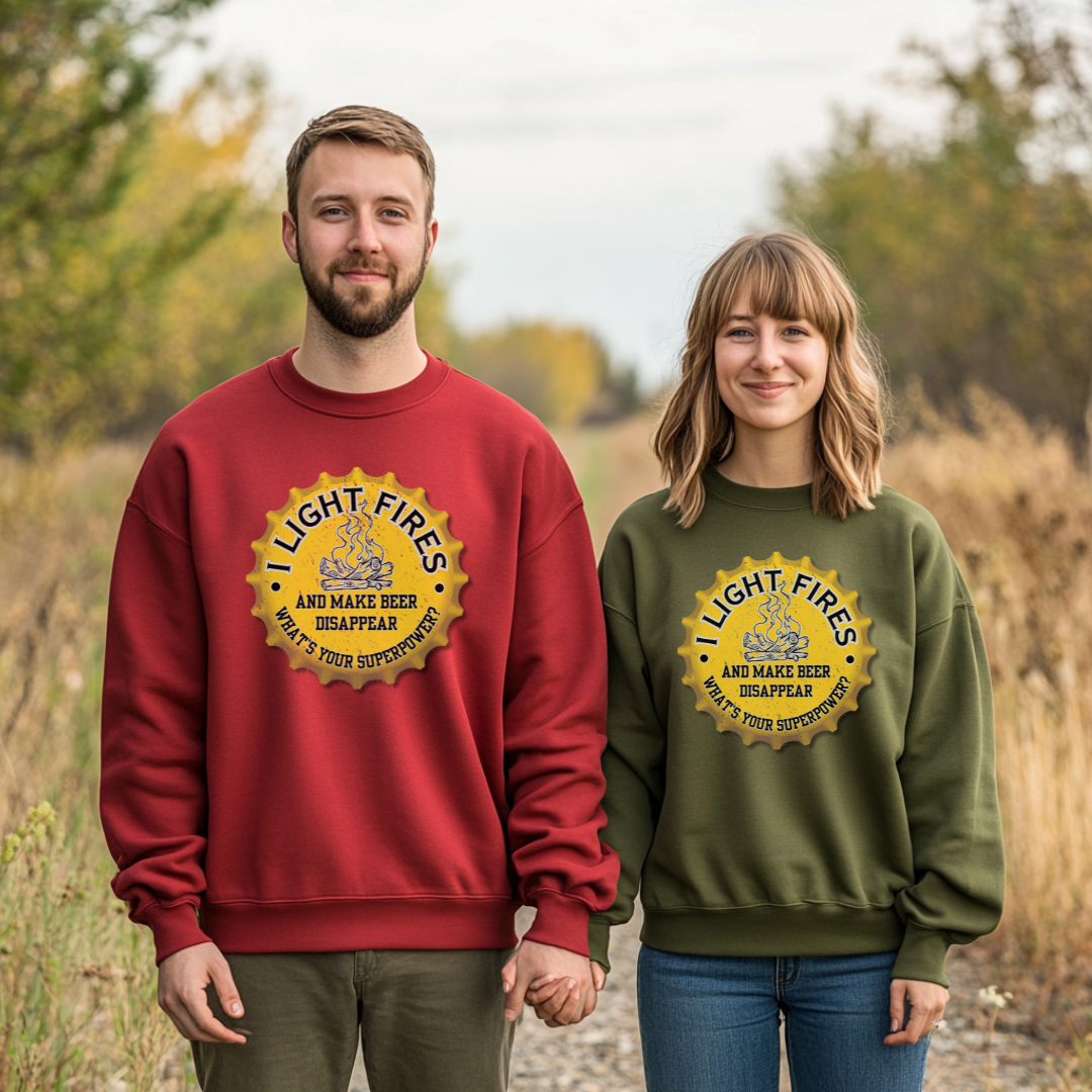 So if you're looking to treat yourself or find a hilarious and heartfelt gift for the camper in your life, the “I Light Fires And Make Beer Disappear” sweatshirt is the perfect pick. It’s designed for campers, tailgaters, backyard brewers, and beer-loving fire starters alike. Shop now and bring home a piece of gear that’s as fun as it is functional—because life’s better around the fire, especially with a beer in hand and a great sweatshirt on your back.