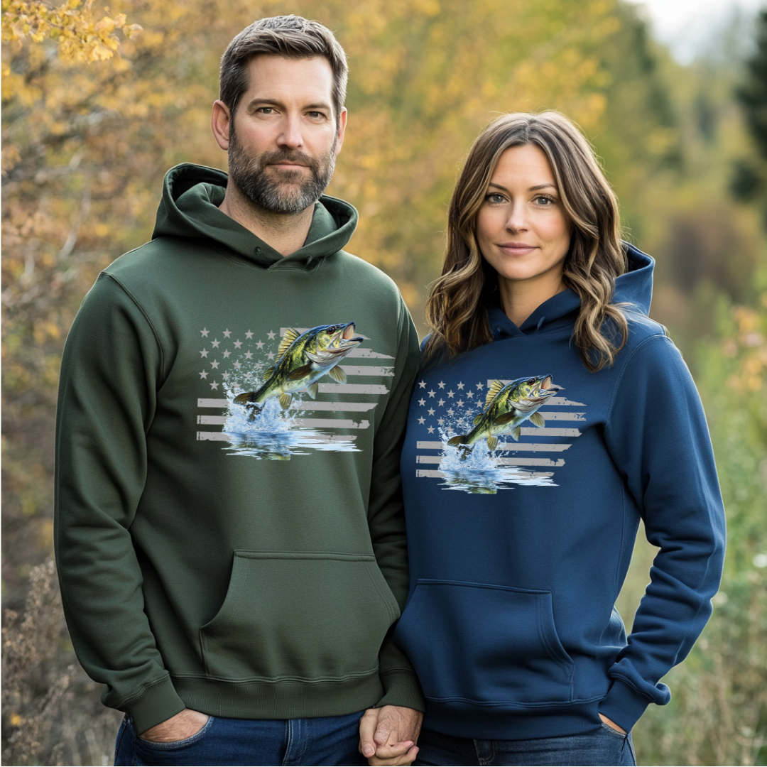 Crafted with care, this hoodie is made from a warm and durable cotton blend that feels soft on the skin while providing just the right amount of warmth for chilly mornings on the lake or cool fall evenings. Its long sleeves and relaxed fit make it ideal for layering, whether you're wearing it out on the water or around the backyard grill. This is more than just a hoodie—it's a statement piece for anglers who take pride in their lifestyle and their flag.